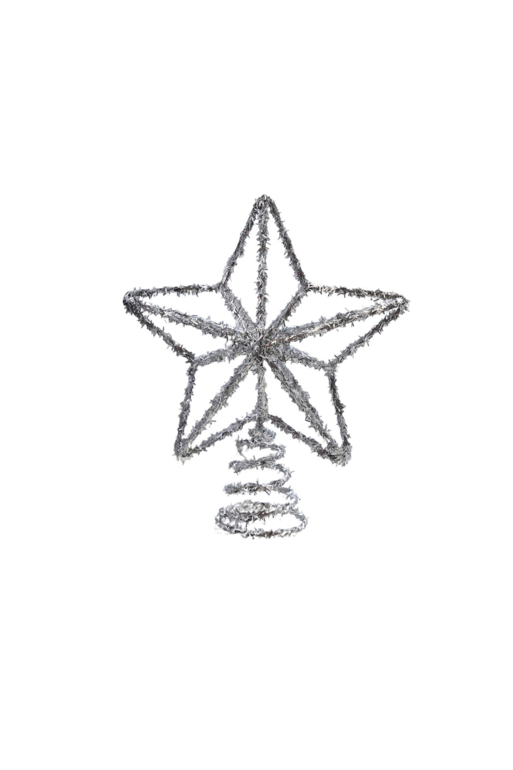 The shining start on top of the tree! This silver tinsel star tree topper adds a little sparkle to your decor this season!